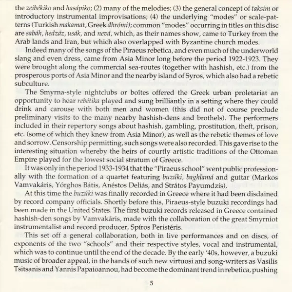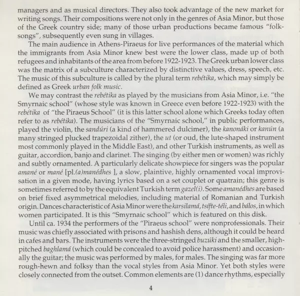| Titolo | Greek-Oriental Rebetica (Songs and Dances In The Asia Minor Style - The Golden Years: 1911-1937) |