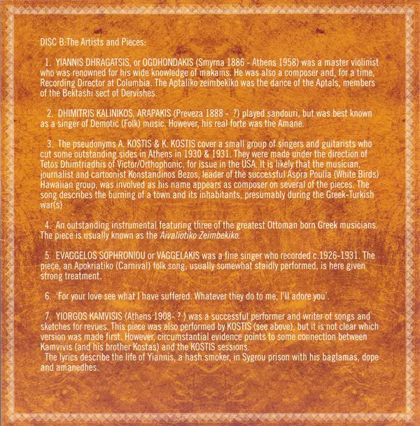Bouzouki [2nd, Poss], Baglama, Guitar Unknown Artist | Written-By, Bouzouki Βασίλης Τσιτσάνης | |||