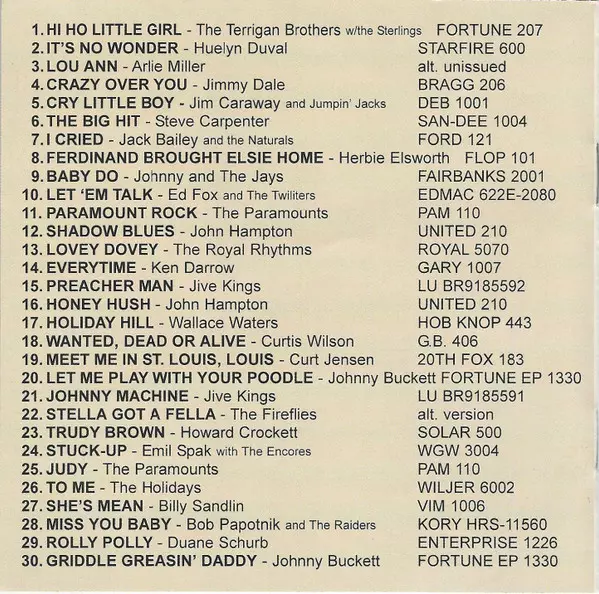 | 1 | The Terrigan Brothers, The Sterlings: Hi Ho Little Girl | 1:37 min | |