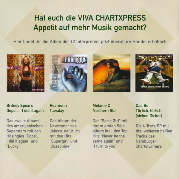 | 1 | Britney Spears: Oops! ... I Did It Again (Album-Version) | 3:30 min | |
