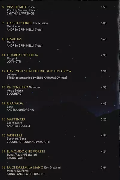 1-18 | Sting, Angela Gheorghiu: Là Ci Darem La Mano - Don Giovanni | 3:04 min | |