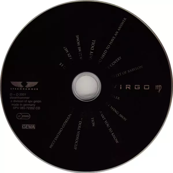 Virgo: Virgo versione su CD in standard edizione. Questa particolare edizione è stata pubblicata in Germania nella casa editrice Steamhammer in data 28. settembre 2001. Album comprende generi Rock, Pop, Heavy Metal, Soft Rock e Symphonic Rock.