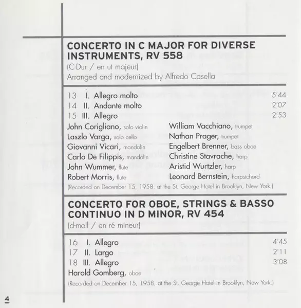 | Titolo | The Four Seasons (Le Quattro Stagioni) / Concerto For Diverse Instruments / Oboe Concerto / Flute Concerto |