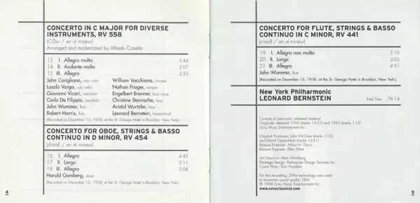 | Artista | Antonio Vivaldi | Leonard Bernstein | New York Philharmonic |