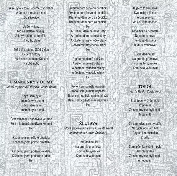This album is a collaboration between Vlasta Redl and Jiri Pavlica and their bands AG Flek and Hradistan. It was released in 1994 and contains 11 tracks.