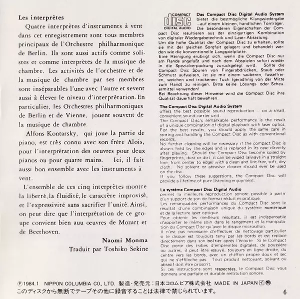 | Artista | Wolfgang Amadeus Mozart | Ludwig van Beethoven | Blasorchester der Berliner Philharmoniker | Alfons Kontarsky |