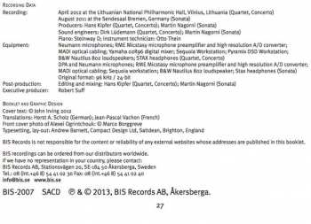 | Per saperne di più | SACD Jewelcase — BIS (Europe release) |