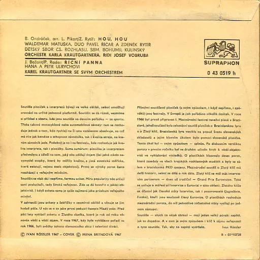 Conductor Karel Krautgartner | Lyrics By Petr Rada | Music By Jiří Bažant | Orchestra Orchestr Karla Krautgartnera (2) | Vocals Hana Ulrychová, Petr Ulrych |