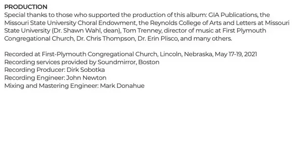 | Artista | Robert Bode | Missouri State University Concert Chorale | Cameron F. LaBarr | William Averitt |