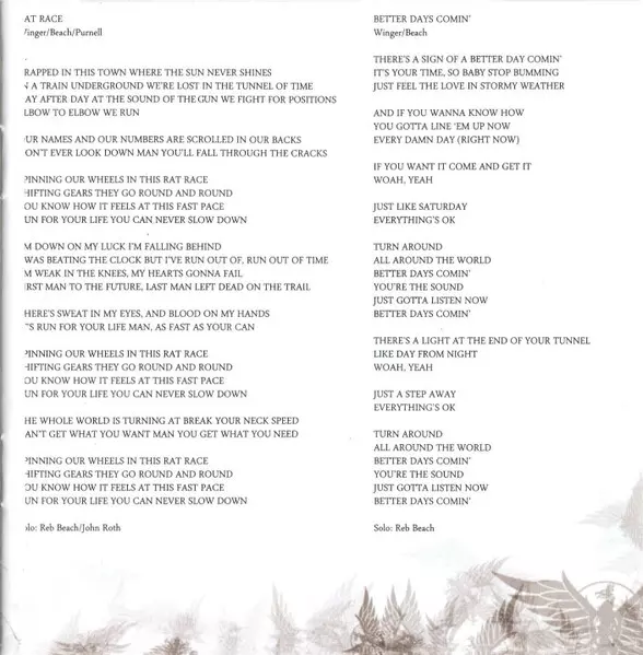 Winger is an American rock band formed in New York City in 1987 by lead vocalist and bassist Kip Winger, guitarist Reb Beach, drummer Rod Morgenstein, and keyboardist Paul Taylor. The band achieved significant commercial success during the late 1980s and early 1990s with their blen...
