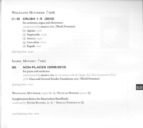 | 6 | Isabel Mundry: Non-Places For Piano And Orchestra (2008/2012) | 25:57 min | |