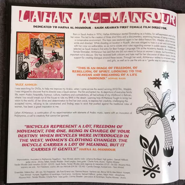 Ensemble, Alto Saxophone Helena Kay | Ensemble, Baritone Saxophone Gemma Moore | Ensemble, Double Bass Charlie Pyne | Ensemble, Drums Sophie Alloway | Ensemble, Guitar Samuel Hällkvist | Ensemble, Guitar [Wah-Wah] Shirley Tetteh | Ensemble, Percussion [Including Second-Line Intro] Corrina Silvester | Ensemble, Piano Alcyona Mick | Ensemble, Tenor Saxophone Tori Freestone | Ensemble, Trombone Carol Jarvis | Ensemble, Trumpet [Additional] Becca Toft | Ensemble, Trumpet, Flugelhorn Noel Langley, Yazz Ahmed | Soloist [Improvisations], Drums Sophie Alloway | Soloist [Improvisations], Flugelhorn Yazz Ahmed | Soloist [Improvisations], Piano Alcyona Mick | Soloist [Improvisations], Tenor Saxophone Tori Freestone