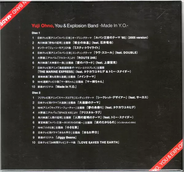 Yuji Ohno: Made In Y.O. = メイド イン Y.O. versione su 2CD in standard edizione. Questa particolare edizione è stata pubblicata in Giappone nella casa editrice Vap in data 25. luglio 2005. Album comprende generi Palcoscenico e schermo, Jazz e Funk / Soul.